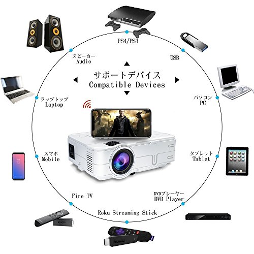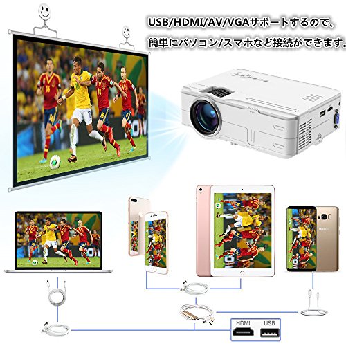 多用途なプロジェクター このホームプロジェクターはUSB/HDMI/AV/VGAサポートしますので、簡単にパソコン/スマホ/タブレット/ゲーム機など接続ができます。 懇親会、イベント、勉強会、セミナー、パーティー、ゲームなど様々な用途に合わせ、、いつでもどこでも手軽に大画面で投影することができます。ご家族と一緒にホームシアターで楽しましょう! | 優れた放熱機能及び高さ調整機能 この小型プロジェクターの側面にいくつかのルーバーが設けられて、放熱機能が優れるので、耐久性が良いです。また、本体の底部に高さ調整の機構が付いており、投影環境によって高さを調整することができます。 50000時間の長寿命及び目保護技術採用 LEDランプの動作寿命が長く、50000時間以上動作することができます。目にやさしい光源技術を採用し、あなたの目をちゃんと守ります。 | 2年保証期間及び健全なアフターサービス YOKOO 小型プロジェクターは2年の保証期限があります。ご利用中何か不明がございましたら、お気軽に弊社のカスタマーサービスまでお問い合わせください。24時間以内(土日でも対応)にご満足いただける対応をします。 標準的なカメラ三脚に対応 標準的な三脚穴があるので、天井付けと三脚付け両方とも可能です! ご注意:三脚スタンドが同梱されていません。 |