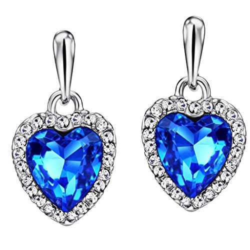 -. Title : Neoglory Blue Ocean Heart Crystal Drop Earrings Rhinestone Platinum Plated Fashion Christmas Gifts