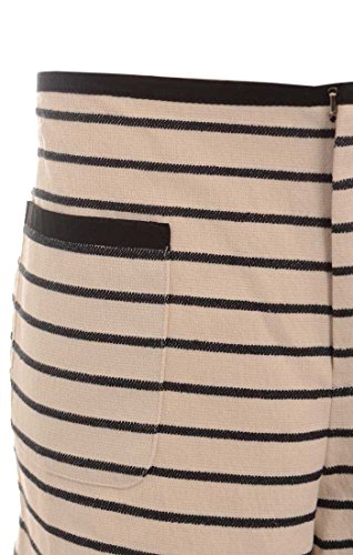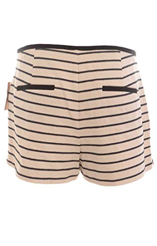 This shorts by Rachel Roy features mid rise, sits below natural waist, zipper and button closure, off seam pocket with contrast piping, allover stripes.