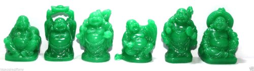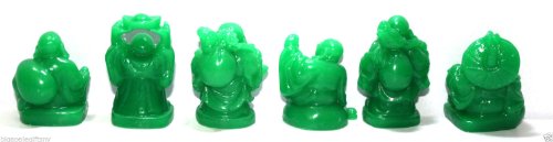Set of 6 Jade Color Feng Shui Laughing Buddha Statue Figures Luck & Wealth