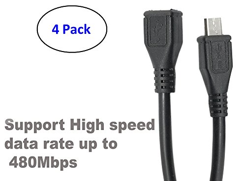 ( 4 Pack ) Micro USB Type B Male To Female M/F Extension Extender Charging Cable Cord (30cm - 1 foot - 0.30m) - Black
