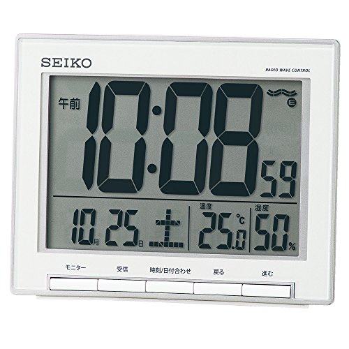 -. Title : セイコー クロック 目覚まし時計 電波 デジタル カレンダー 温度 湿度 表示 大型画面 銀色 メタリック SQ786S SEIKO