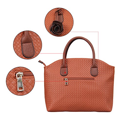 Product Description Crafted in woven pattern synthetic leather, this polish handbag from Hynes Victory comes detachable floral adorn charm with gold tone minimalist designed hardware. The decent capacity fits everything a modern ladies on the go wants. Embrace the glamorous purse in this spring and coming summer. 0