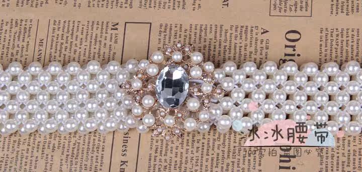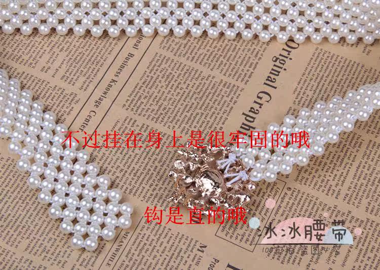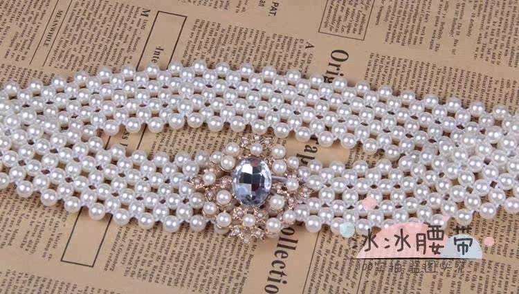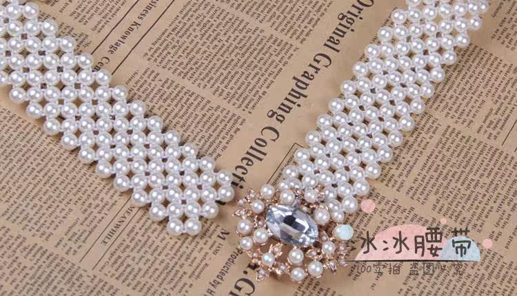 Upscale decorative skirt big wild pearl diamond pearl waist chain belt fashion flowers woven elastic girdle female