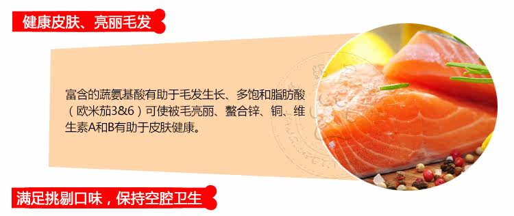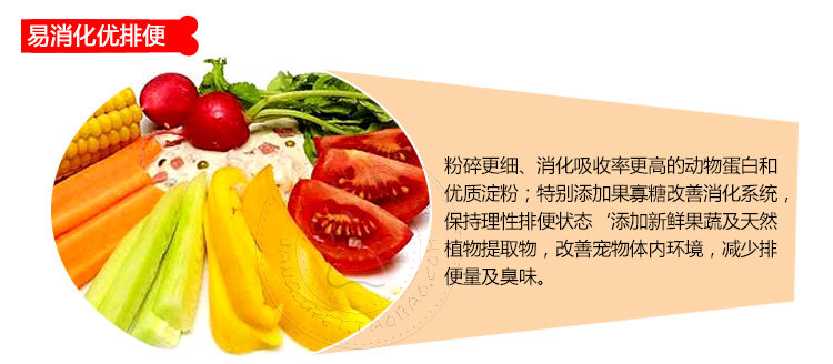 | Fish, chicken, corn, wheat, butter, chicken oil, vegetable oil, soybean meal,phospholipid fatty meal, hydrolyzed protein powder, egg powder, carrot,seaweed, FOS, yucca extract, taurine, choline, methionine, Lai An acid,vitamin A, C, D, E, K, B1, B2, B6, B12, biotin, niacin, pantothenic acid, folic acid, trace elements of zinc, copper, iron, manganese, selenium |