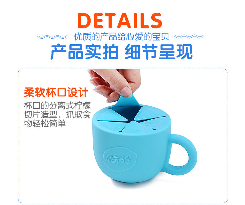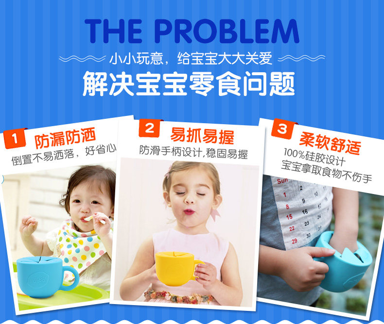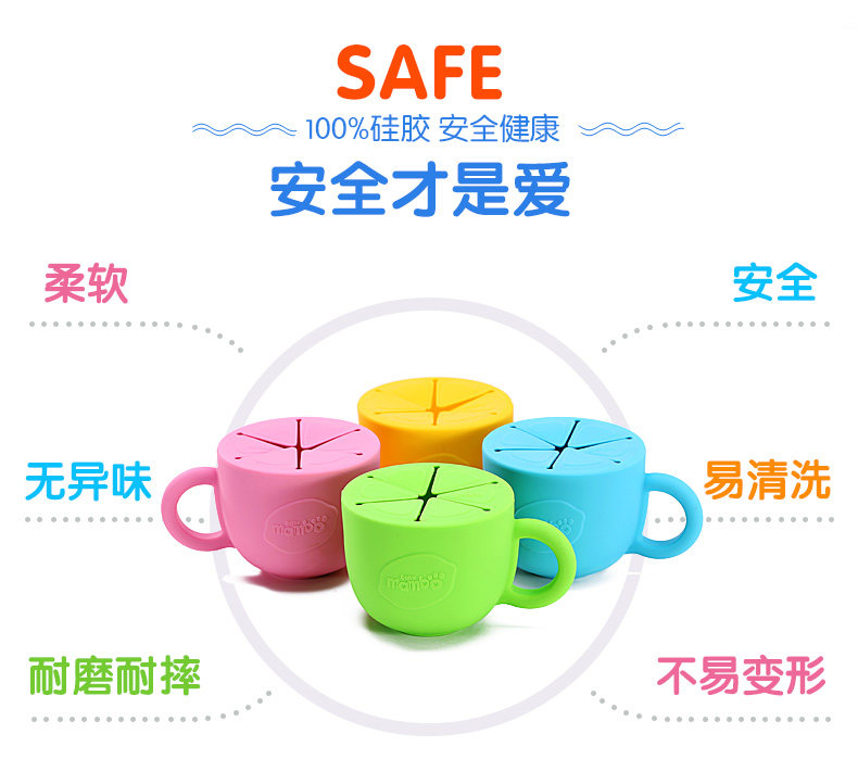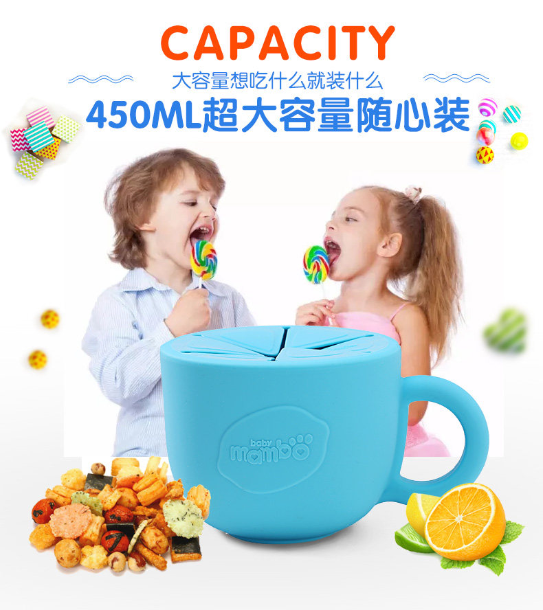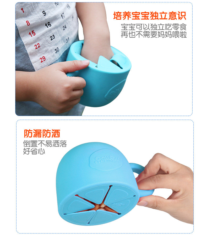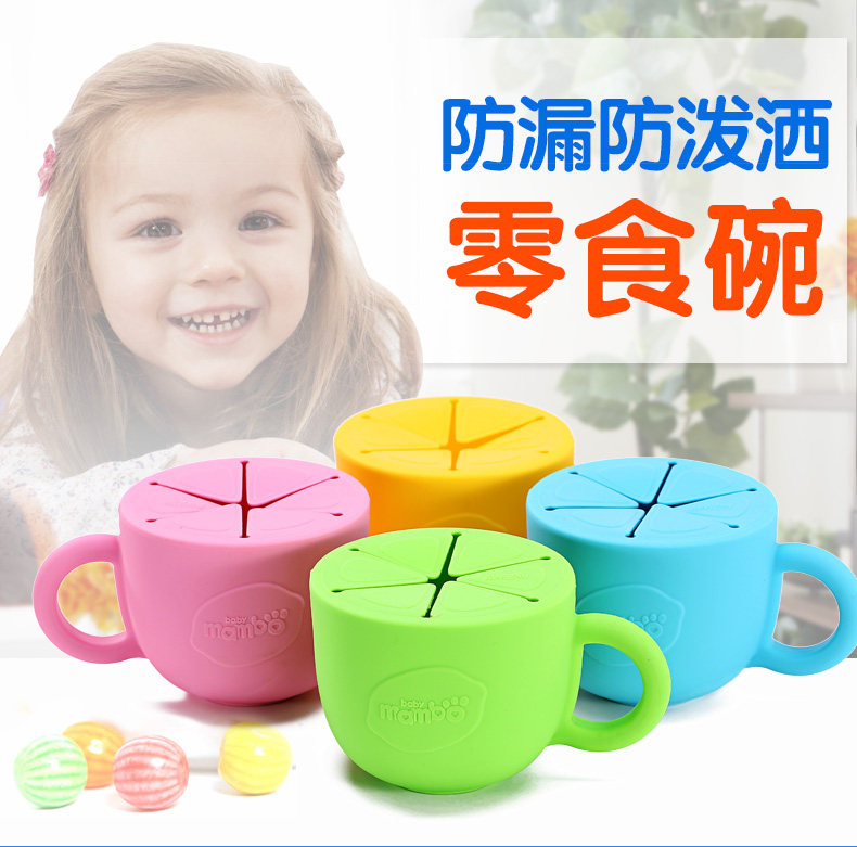 宝宝零食碗儿童零食杯防洒泼防漏婴儿零食盒硅胶带把手带盖