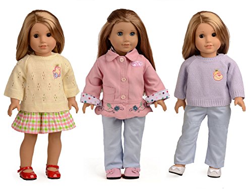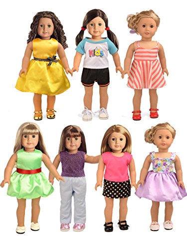 Doll Clothes 7 Outfits Fit 18 Inch Dolls American Girl Dolls Package Include Total 7 Mixed Sets Doll Clothes Doll clothes only, no shoes and dolls included Brand : sweet dolly EAN : 0714559863800 Package Dimensions(LxWxH) : 24x19x4cm ; 23 g