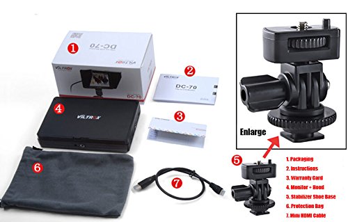 - Title : JFOTO Viltrox 7 Inch LCD Screen Monitor + Sun Shade Hood + Standard Shoe, for Sony A7S, A7, A7R, NEX VG10,VG20, VG30, VG900, EA50, FS100, FS700