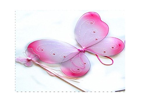 Pink Butterfly Fairy Princess Wing & Wand Set embellished with sparkly glitters and elegant satin ribbons.