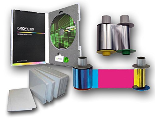 -. Feature : Comes with everything you will need to start printing cards / Color ribbon (500 images) / Transfer film (1500 images) / 500 PVC cards / CardPresso design software