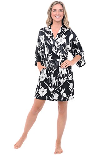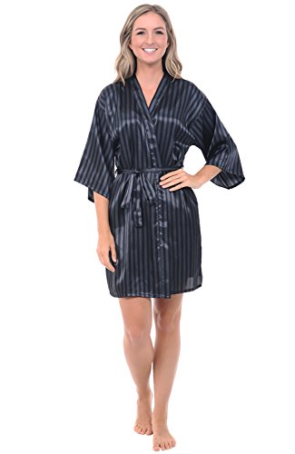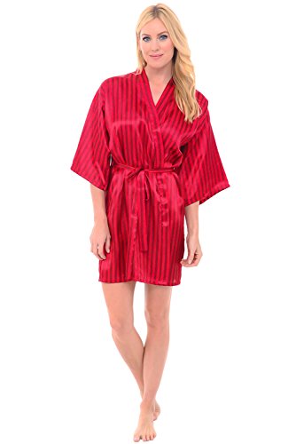 Binding : Apparel Product Description This women's satin robe from Alexander Del Rossa is comfortable, durable, and classy. Made from premium 100% polyester satin fabric, this women's lounge robe is cool and easy on the skin. Designed with you in mind, this classic house coat is perfect for lounging around the house - even when guests are present. Rich in features, we trust that this satin robe for women will not disappoint. Robe Features Premium 100% polyester satin fabric Standard length robe Inside tie closure Matching belt One front pocket Durable stitching that will last Machine washable (see easy wash instructions below) Returns accepted if you are not completely satisfied. Washing Instructions Wash in cool water with like colors.? Dry on low heat only. Sizing Recommendations Small: Will fit Chests 32-34", Waists 24-26", Hips 33-37" Medium: Will fit Chests 34-36", Waists 26-28", Hips 35-39" Large: Will fit Chests 36-38", Waists 28-30", Hips 36-41" XL: Will fit Chests 40-42", Waists 30-32", Hips 42-46" 2X: Will fit Chests 46-50", Waists 40-44", Hips 48-52" 3X: Will fit Chests 50-54", Waists 44-48", Hips 52-56" 4X: Will fit Chests 54-58", Waists 50-54", Hips 58-62" 0