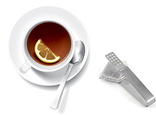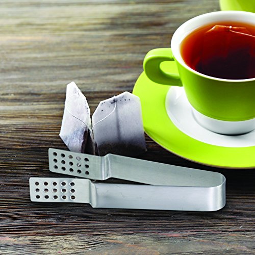 Product DescriptionThis set of stainless steel tea bag squeezers let you press all the moisture and flavor out of your tea bag after steeping is complete. The tea bag tongs have perforations at the tips, allowing for moisture to be released.0