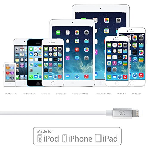 Integrated aluminum single piece head pin designed for Heavy usage | Apple miff certified 8 pin optimum length 2.0M(6.3 feet) Lightning cable and uses original connector from Apple fully compatible with iOS 7 & 8