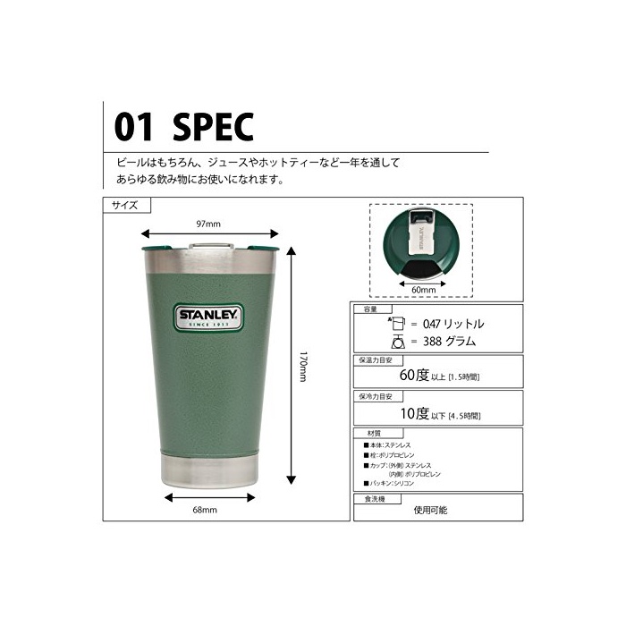 원본상품명: STANLEY(スタンレ?) クラシック?空パイント 0.47L グリ?ン 01704-023 (日本正規品)