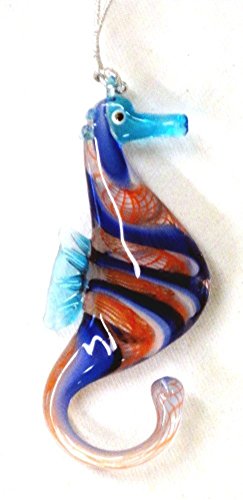 - Glass Seahorse Christmas Ornament or Just a Hanging Ornament - Orange & Blue