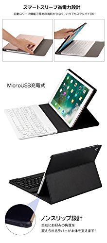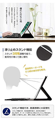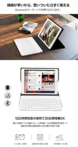 保護ケースとキーボードは脱着可能なので独立使用できます。キーボードはBluetooth接続で10メートル以内間隔操作できます。iPad以外、iPhone、Macなども使えます。キーボードのキーが500万回タイピングテスト済。クリック感あり、押し間違いも起きにくいです。