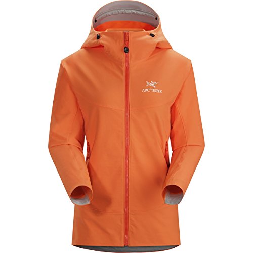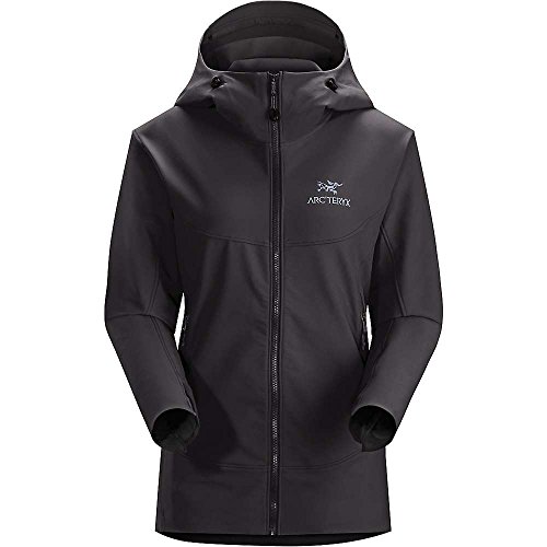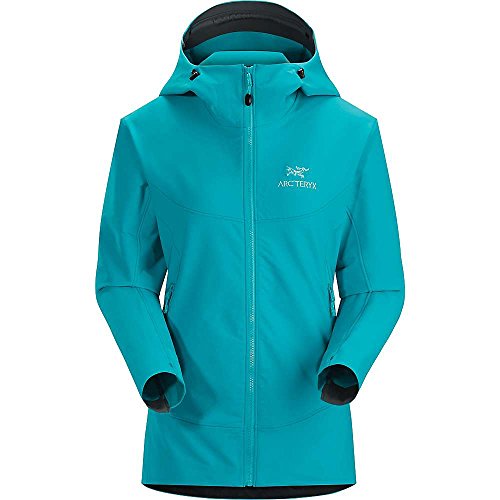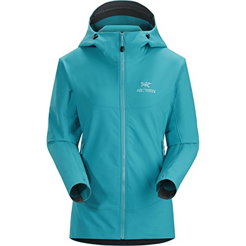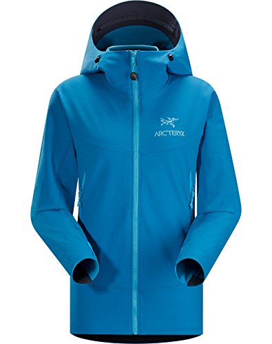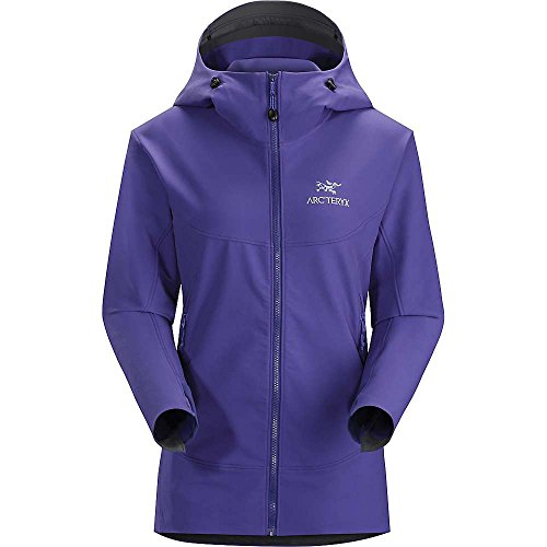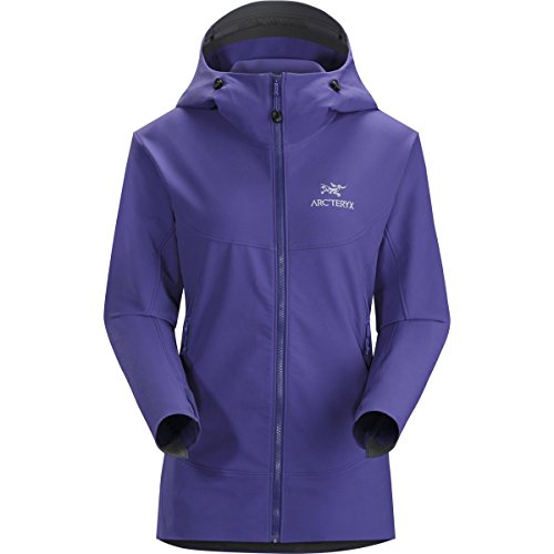 When you're hundreds of feet up a wall, the slightest breeze can turn an otherwise enjoyable climb into a shivering, teeth-chattering grind; slide on the Arc'teryx Women's Gamma LT Hooded Softshell Jacket to stay protected against the wind and mid-summer alpine temps. Wee Burly Double Weave softshell combines the durability of a nylon face with a polyester backer for strength and stretch, and the fabric also has a DWR finish, so raindrops ricochet off the jacket. The regular fit sits closely to your body, too, without being too tight to restrict movement. The Gamma LT features a helmet-compatible StormHood that moves with you, so you are able to maintain a good field of vision when you belay your climbing partner. The jacket's Vislon front zipper resists water, and the stretch gusset cuffs seal around your wrists and a hem drawcord keeps any unwanted winds from breezing up your back as you climb. One chest pocket secures any valuables you need to keep close, leaving your hands free to warm up in the two hand pockets as you relax with your partner at the top of the route.Feature
