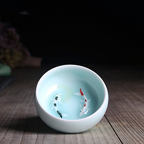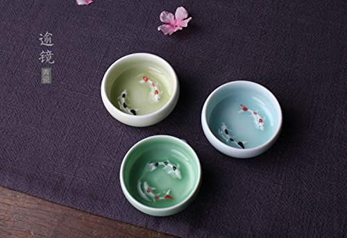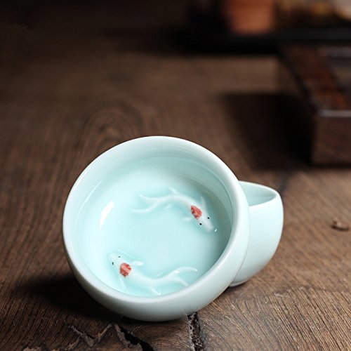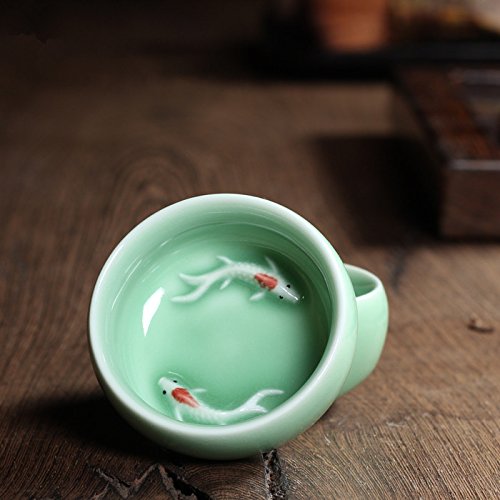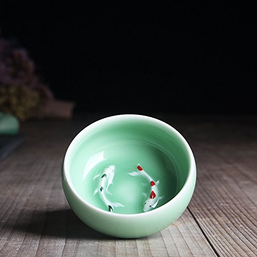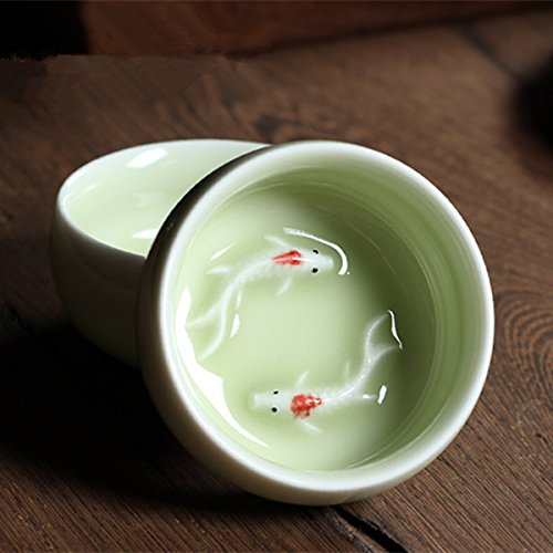 -. Feature : Material: Celadon,Exquisite workmanship glazed smooth, quality assured / The high temperature burn, healthy environmental protection / Cup body powder Koi Fish, symbol of auspicious meaning / Capacity: 50 ml, Size: width:2.8 Inch, height:1.1 Inch