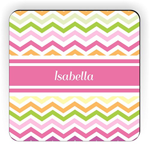 Rikki Knight "Isabella" Pink Chevron Name Design Square Fridge Magnet