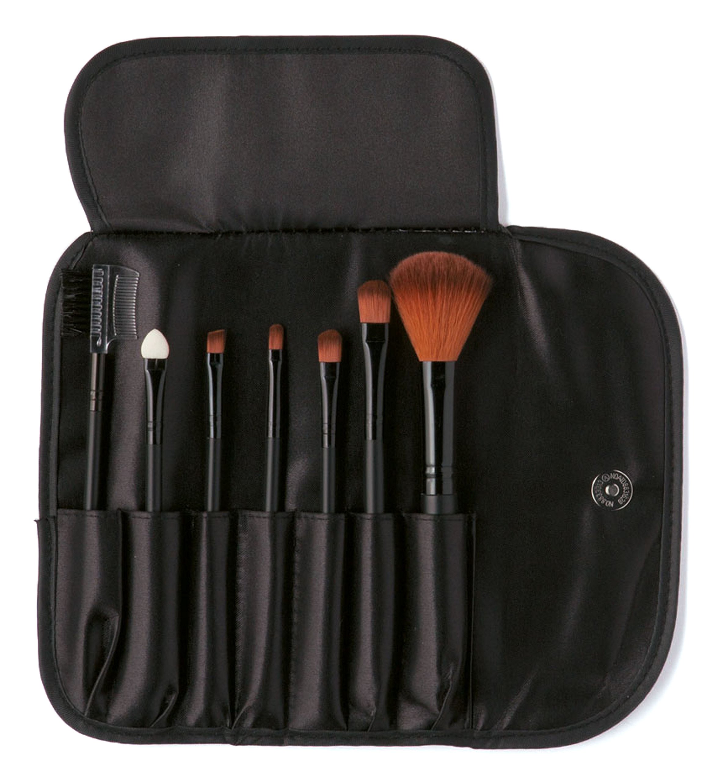 Includes: Cheek Brush, Eye Shadow Brush (Large), Eye Shadow Brush (Small), Lip Brush, Eyebrow Brush, Eyeshadow Chip, Comb & Brush