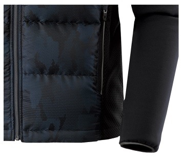 남성 하이브리드 자카드 패턴의 패딩자켓으로 ??팔전체 및 옆라인 부분에