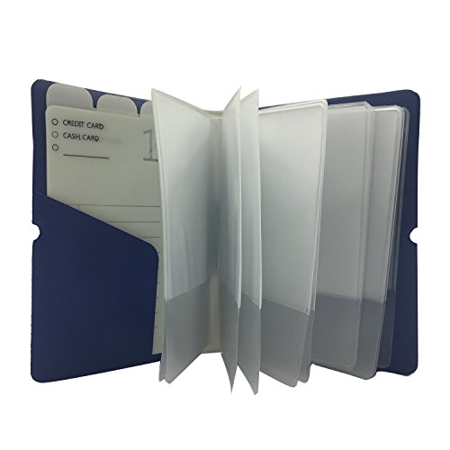 Binding : Apparel Product Description Specifications: Material: PU leather Size: length 10.8cm(4.25'), width 7.5cm(2.95') Features: Maintenance: water or detergent to clean Can be used to ID cards, credit cards, access cards, bank cards, scorecard, shopping cards, club cards, etc Slim compact storage solution that keeps your cards clean, undamaged fit inside any pocket Double-sided 24 position card holder,great gift to your workmates, family members and friends 2mm thickness PU leather products high-grade metal buckle PVC inside pages Package includes: 1 x Card Holder 0