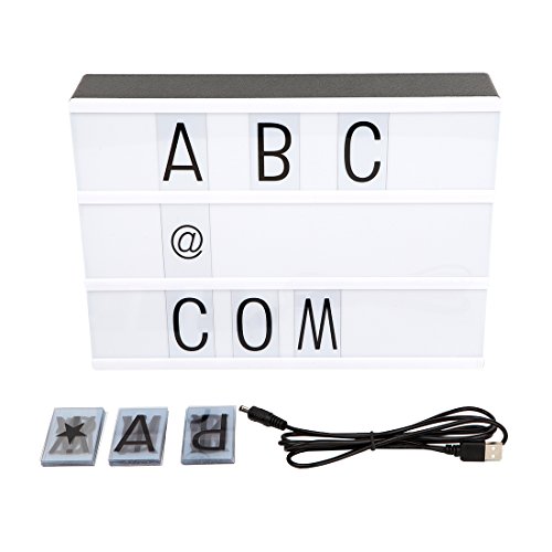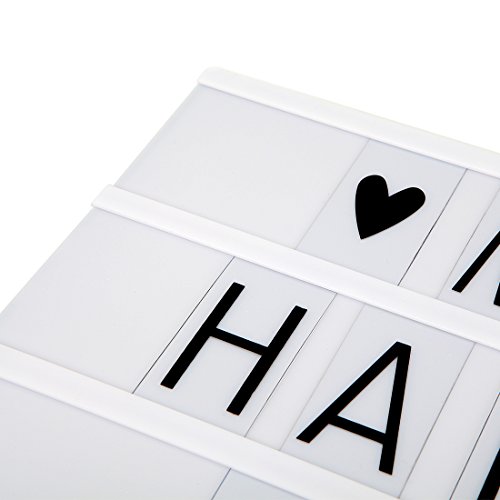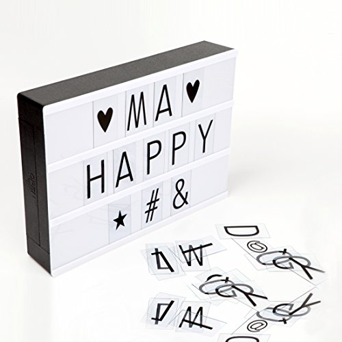 Decorative battery powered LED lightbox with 90 letters and symbols for making your very own fun messages. You can change the messages as often as you like simply by sliding the letters. This light box includes:One free combinatino light box