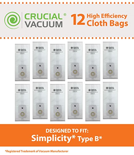 12 Simplicity Type B Vacuum Bags for Simplicity 7000 Series Vacuums; Compare to Simplicity Part Nos. C15-6, C15-12, S7-6 & S7-12; Designed & Engineered by Crucial Vacuum