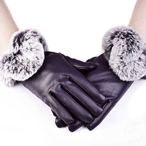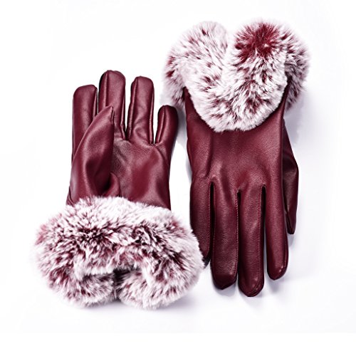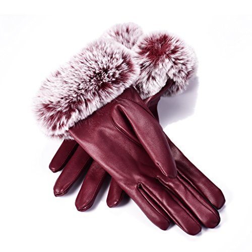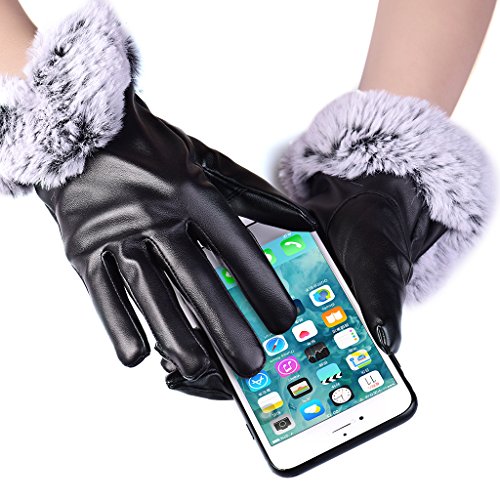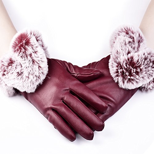 Womens Texting Winter Gloves, Touchscreen Soft PU Leather Warm Lined Gloves