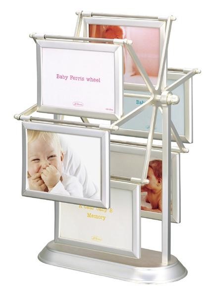 楽しくてオシャレ!!クルクル回せる遊び心満載の観覧車形フレームです。表裏両面使用で12枚の写真を飾ることができます。 製造国:中国 素材・材質:亜鉛合金、スチール、シルバーメッキ 仕様:縦置専用卓上専用 ※サプライヤー直送品 ご注文後3~4営業日後の出荷となります【商品名】ラドンナ ベビー 連結フレーム 観覧車形フレーム RM03-60