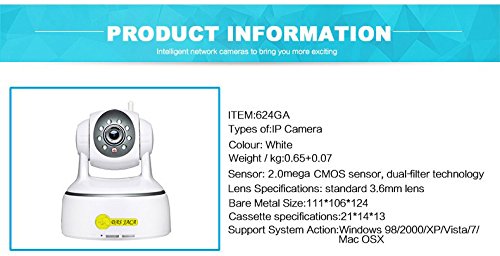 -. Feature : ChipsetGrain Media 8138s; Lens2.0Mega pixels CMOS; IR Distance 5m / 8pcs IR LEDs, 5m effectively night vision, Pan and Tilt controlrotating; 350 degree in horizontal,100 degree in vertical ; I / built-in mic and speakertwo-way for voice communication; / Recording storageSupport max.64GB SD /TF card; / Supported Mobile SystemsAndroid, iOS
