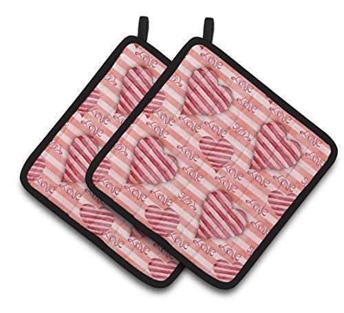 Caroline's Treasures BB7567PTHD Watercolor Red Striped Hearts Decorated Pot Holder, 7.5" x 7.5", Multicolor