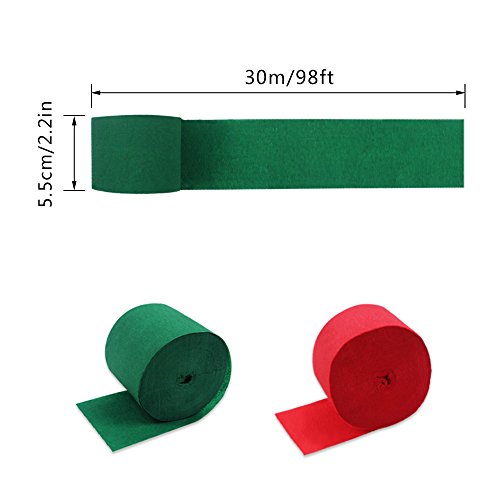 Studio : Coceca20171109 Publisher : Coceca20171109 Binding : Toy Product Description Super-value Pack of 6pcs red paper streamers and 6pcs green paper streamers to meet your various needs. Color: red, green. Size: 5.5cm wide and 30 meters long. Package including: 6 Red Crepe Paper Streamers 6 Green Crepe Paper Streamers They can also be used as decoration for various backgrounds and doors or matching with other decorations. When you decorate your party or wedding with these streamers, most of them are decorated on the ceilings so a neat roll is very convenient to use and hang. You can also DIY with them as the roll of paper has good elasticity and bright colors. They are the preferred DIY materials with eye-catching colors. Note: If this roll of paper is in contact with water, it will break or fade. When you use double-sided adhesive or other adhesives, please peel and paste carefully. 0