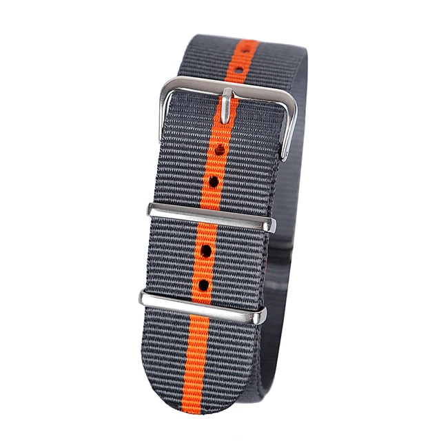 24 미리메터 회색 orange 회색 스포츠 나토 직물 시계 밴드 스트랩 액세서리 밴드 나일론 손목 스틸 버클 벨트