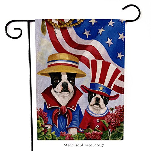 -. Title : Dyrenson Home Decorative Outdoor Dog Garden Flag Geraniums Flower, Boston Terrier House Yard Flag, Just Married Floral Garden Yard Decorations, Seasonal Outdoor Flag 12 x 18 for Lover Wedding Holiday