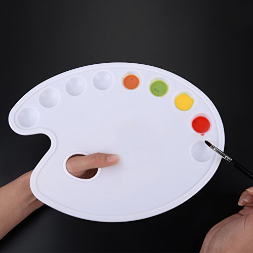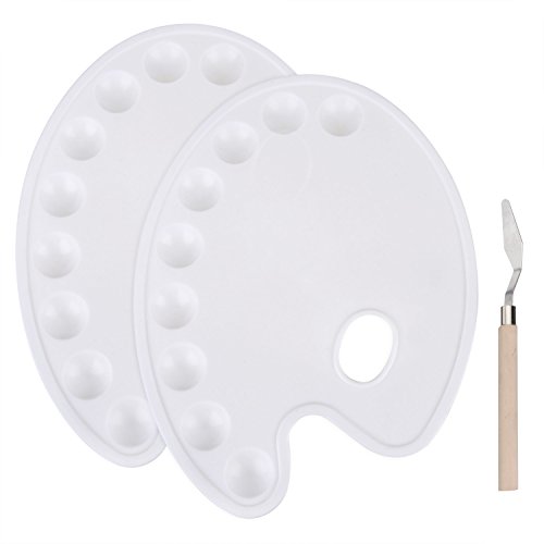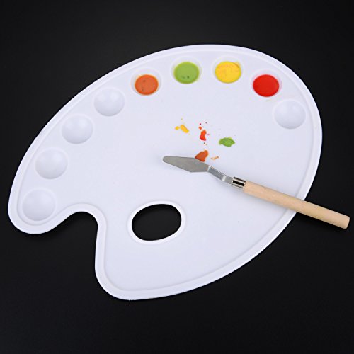 -. Title : Shappy 2 Pieces Paint Tray Palette Mixing Painting Trays Watercolor Oil Palette 9 Wells with Thumb Hole and Palette Knife Tool