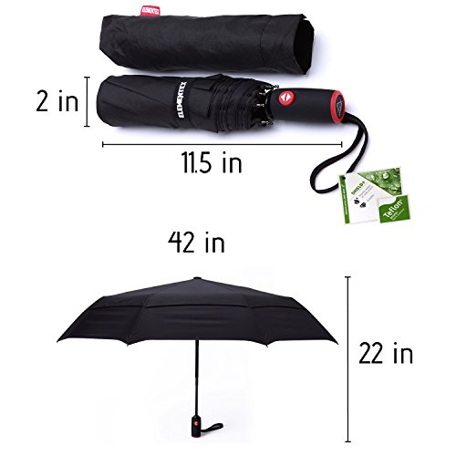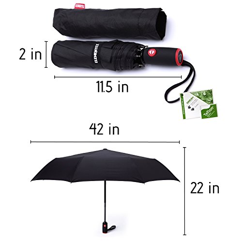 The ELEMENTEX DuPont Teflon Travel Umbrella shields you in all weather conditions, and comes with our brand's hassle-free 90-Day Money Back Guarantee and a Manufacturer's Lifetime Warranty. The sturdy umbrella is water-repelling and includes vent for wind resistance. ELEMENTEX - Be one with the elements. Here at ELEMENTEX, we are all about the Experience - truly losing oneself in nature and being one with the elements. When you are hiking through lush green forests, conquering frosty alpine peaks, or kayaking down roaring rapid rivers, you need gear that is built tough to take on any trail or unchartered terrain, and able to withstand all kinds of weather, fair or fickle. To maximize your experiences and to help you create the most memorable adventures, ELEMENTEX delivers Excellence: High-performance clothing, gear and accessories that are made to tackle every excursion, camping trip, recreational sport, or any outdoor activity in your active lifestyle. ELEMENTEX is as enthusiastic as you are about being outdoors, so we fuel that energy into every product we make, but we don't stop there. The ELEMENTEX Team strives to exceed your expectations by providing not only safe and reliable gear, but also exceptional customer service and care. This philosophy is what keeps us rooted, as well as dedicated to providing you with affordable high-quality gear that will be there for you every step of the way. No matter where the road takes you. Escape into nature and truly immerse yourself in the great outdoors with ELEMENTEX at your side. With ELEMENTEX, you're ready to go. Warranty: ELEMENTEX Travel Umbrella comes standard with a limited lifetime manufacturer's warranty from the purchase date, which covers manufacturing and material defects, so long as it was purchased from one of our authorized Amazon sellers. Disclaimer: ELEMENTEX shall not be liable for any damages/injuries resulting from the use of the ELEMENTEX Travel Umbrella. 0 |