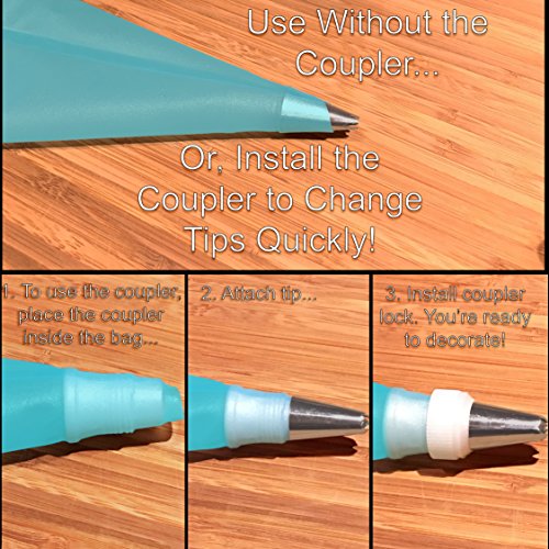 Cake Decorating Tips - Made from High-Quality Stainless Steel - Dishwasher Safe. Reusable Quick-Connect Plastic Couplers Help to Switch from One Tip to Another Quickly