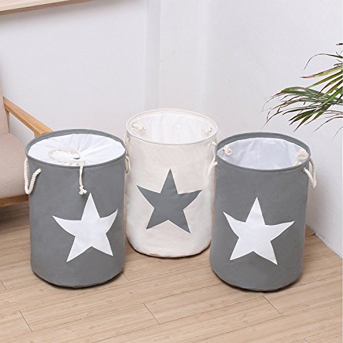 Caroeas Extra Large PE 21.7" Star Laundry Basket Food Safe Storage Hamper Double Layer Eco-friendly Fabric Bin Waterproof Laundry Bag Round (None Cover, Beige)