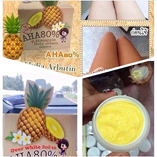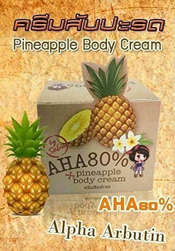 -. Binding : Misc. -. Feature : Cream Pineapple Pineapple Body Cream AHA 80%. (30 g. X 4 Boxes.) / Over White Pineapple AHA 80% Body Cream Pineapple by Sabu pineapple enzyme respective lanes. The accelerated degradation of stains and dirt that clogs at full capacity. Eliminate and reduce the appearance of dark spots on the body. Accelerate the exfoliation of the skin. Reduce rough glum as the beginning of aging. Skin aging and Alzheimer's Accelerated rehabilitation skin to return to its original shine bright again. / Cream Pineapple Pineapple Body Cream AHA 80% Alpha Arbutin leavening the white bottle with the AHA, with up to 80%. / Whitening up to 7-14 days. / How to use: Apply to skin after a morning shower - cold. -. IsAdultProduct : 0 -. Label : Alpha Arbutin -. Manufacturer : Alpha Arbutin -. PackageQuantity : 3 -. ProductGroup : Beauty -. ProductTypeName : BEAUTY -. Publisher : Alpha Arbutin -. Studio : Alpha Arbutin -. Title : 4 Boxes Pineapple Body Cream Alpha Arbutin + Aha 80% Whitening Lighting Bleaching Skin 30g.