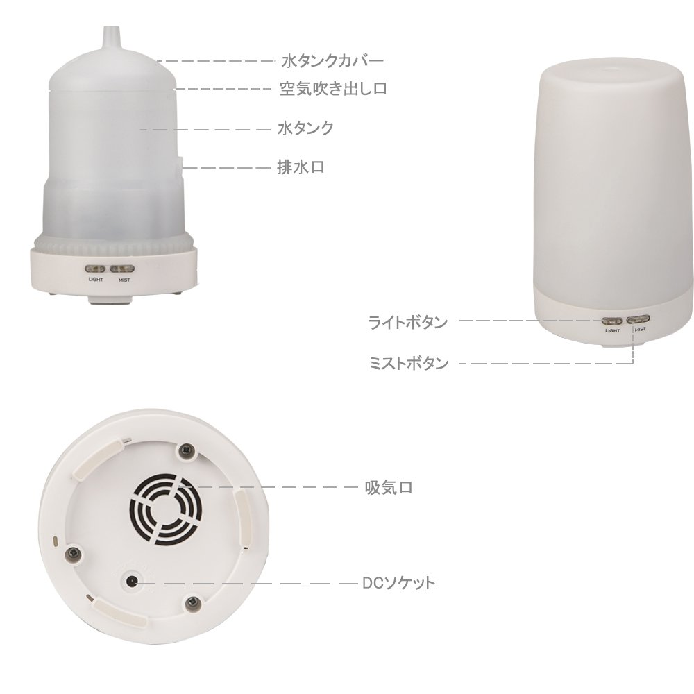 I was looking for a size humidifier that I could put on the bedside for winter and bought it here. It is easy to use. It looks good, it fits any room, it is convenient because it comes with lights. In the evening, I am having a relaxing time with aroma and light. Even if I go to bed as it is, I am relieved. From the beginning, aroma was attached, so I enjoyed it immediately. I asked for the fragrance of OCEAN MIST but it was very relaxing.