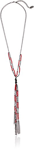 Fashion Multi Chain and Glass Black Bead Y-Shaped Necklace, 27"+3" Extender