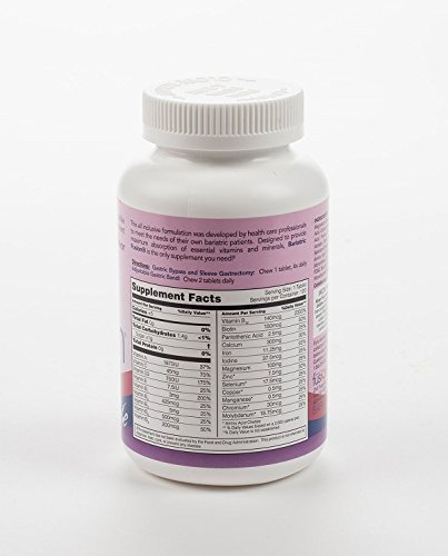 Studio : Bariatric Fusion Publisher : Bariatric Fusion Binding : Health and Beauty Product Description Bariatric Fusions Multivitamin and Mineral Supplement provides the easiest daily regimen after weight loss surgery!Bariatric Fusion Multivitamin Mineral Supplement is designed and formulated by a bariatric surgical team to meet the needs of their weight loss surgery patients. This chewable delicious tasting supplement provides the highest amounts of what the bariatric team believes are the key micronutrients vital for weight-loss surgery patients. The unique all-inclusive formula uses the most biologically available bariatric vitamins and minerals to maximize absorption.Bariatric FusionMultivitamin Mineral Supplement are available in 5 amazing flavors:TropicalMixed BerryStrawberryWild CherryOrange Cream120 Chewable tablets per bottle.Perfect for patients whove undergone weight loss surgery.Gastric BypassRecommendation:Pre-Op Recommendations:Bariatric Fusion Complete Chewable Vitamin Mineral Supplement 1 tablet per dayBariatric Fusion Vitamin D Supplement 1 tablet per dayPost-Op Recommendations:Bariatric Fusion Complete Chewable Vitamin and Mineral Supplement 4 tablets per day [2 in the AM 2 in the PM or spaced throughout the day]No other supplements required.Use Bariatric Fusion Brand Chewable Iron/Vitamin D/B12 supplements only on the advice of your physician.Adjustable Lap Band Recommendation:Pre-Op Recommendations:Bariatric Fusion Complete Chewable Vitamin Mineral Supplement 1 tablet per dayBariatric Fusion Vitamin D Supplement 1 tablet per dayPost-Op Recommendations:Bariatric Fusion Complete Chewable Vitamin and Mineral Supplement 2 tablets per day [1 in the AM 1 in the PM or spaced throughout the day]No other supplements required.Use Bariatric Fusion Brand Chewable Iron/Vitamin D/B12 supplements only on the advice of your physician.Sleeve GastrectomyPre-Op Recommendations:Bariatric Fusion Complete Chewable Vitamin Mineral Supplement 1 tablet per dayBariatric Fusion Vitamin D Supplement 1 tablet per dayPost-Op Recommendations:Bariatric Fus 0