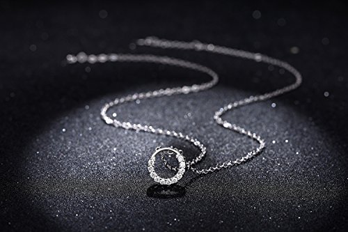 -. Title : Florensi Rhinestone Diamond Ring Pendant Necklace, Rhinestone Necklace For Women, CZ Sterling Silver Necklace, 17” Length Chain