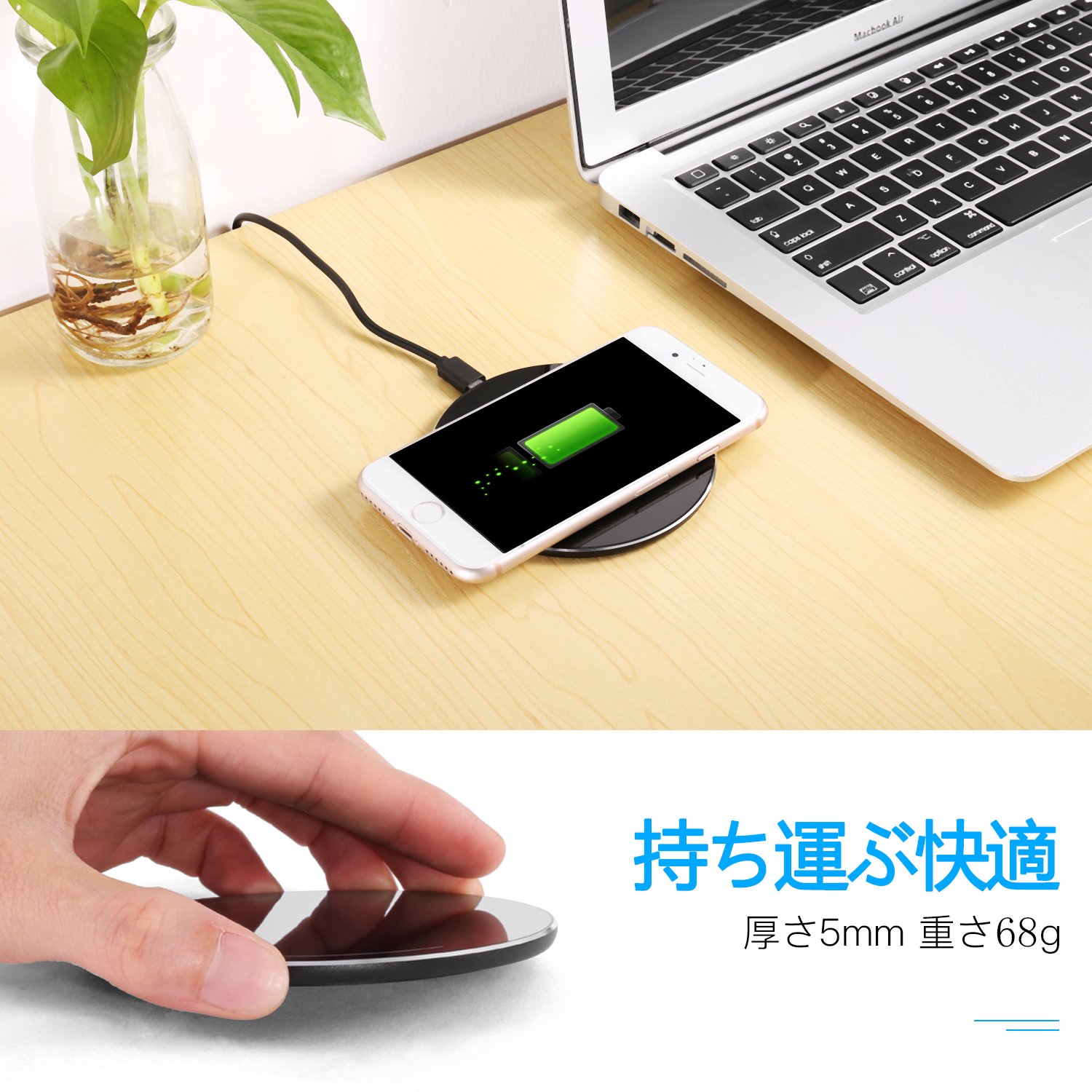 With state-of-the-art Qi technology, you can easily charge it by placing a smartphone of Qi-compatible model.
