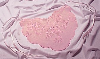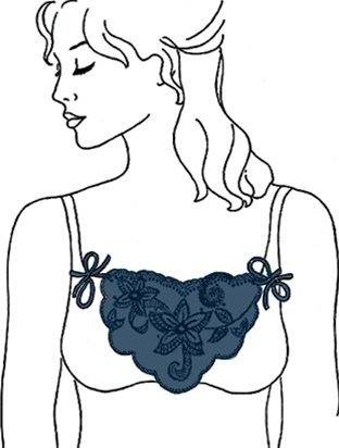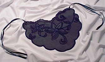 Sheer, vintage inspired embroidered lace inset with scalloped edge, cut in an inverted triangle shape / Slim ribbons tie onto your bra straps