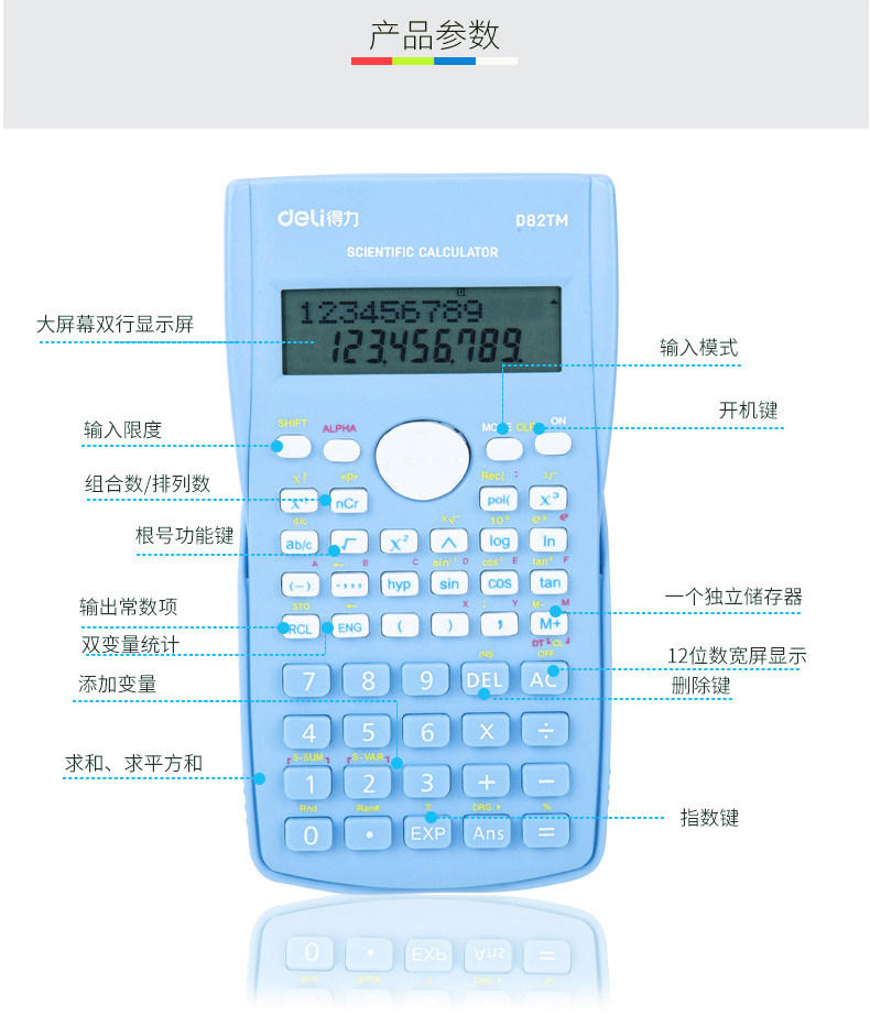 D82tm科学计算器 初中小学生课堂考试用12位数函数型财务可爱