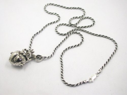 Solid Sterling Silver pill box Anatomical heart with your choice of chain