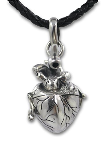 Gorgeous Sterling Silver anatomical heart necklace, can be used to hold a message, carry your medication or special souvenir. your choice of vegan leather braided necklace with sterling clasp in various lengths or solid sterling silver rope chain in 20" or 24"