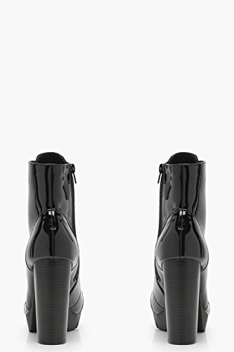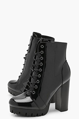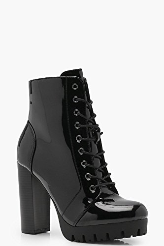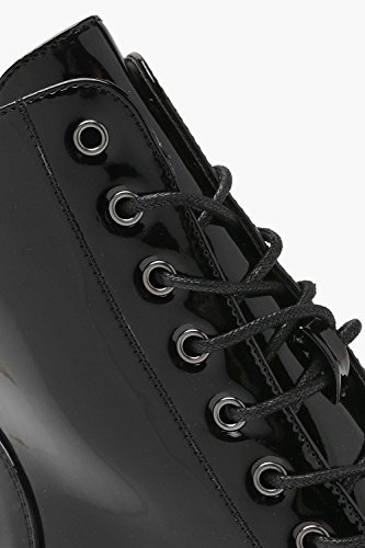 (Boohoo)/Women's/Boots/DIRECT FROM USA/Boohoo Womens Emma Cleated Patent Lace Up Hiker Boot in Black size 6